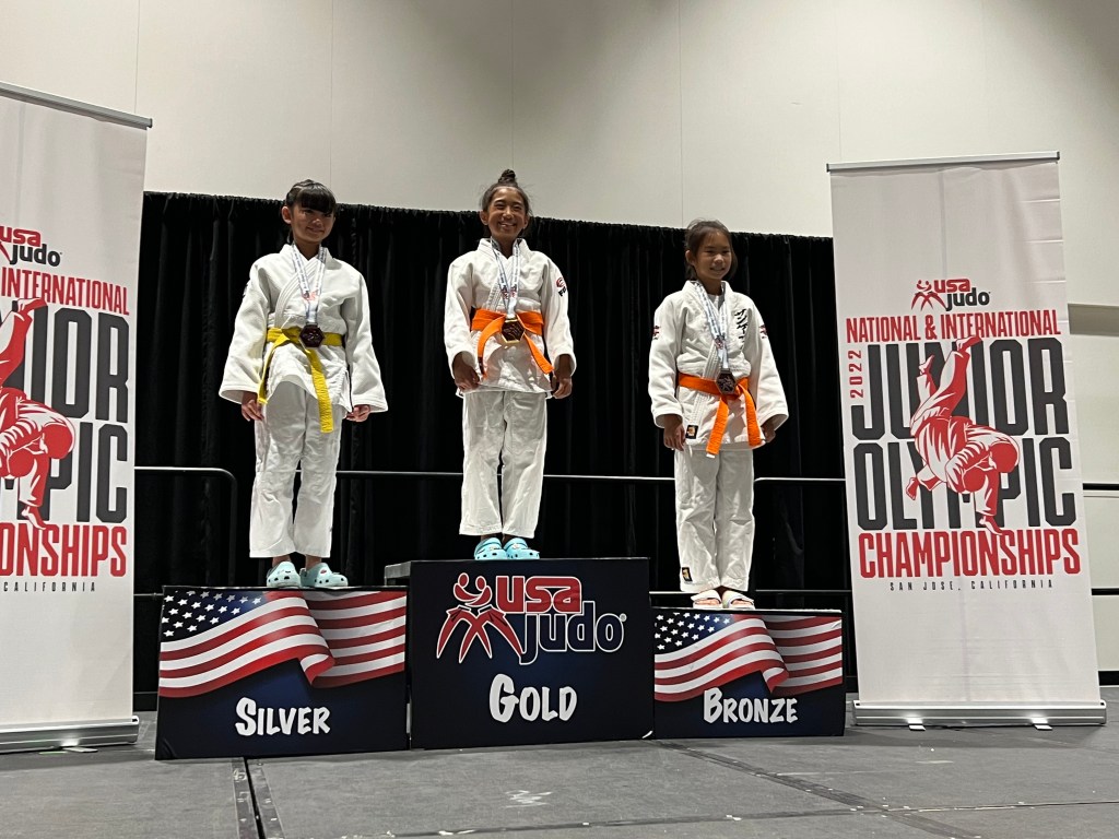 The 2022 Junior Olympic National Championships were held in San Jose, California from June 24-26, 2022. We traveled with a team of 23 judoka to compete. The first two days of the competition, June 24-25 were the national competition and the third day, June 26th, was an international competition. Most of our judoka competed in both the national and international divisions. Congratulations to everyone!